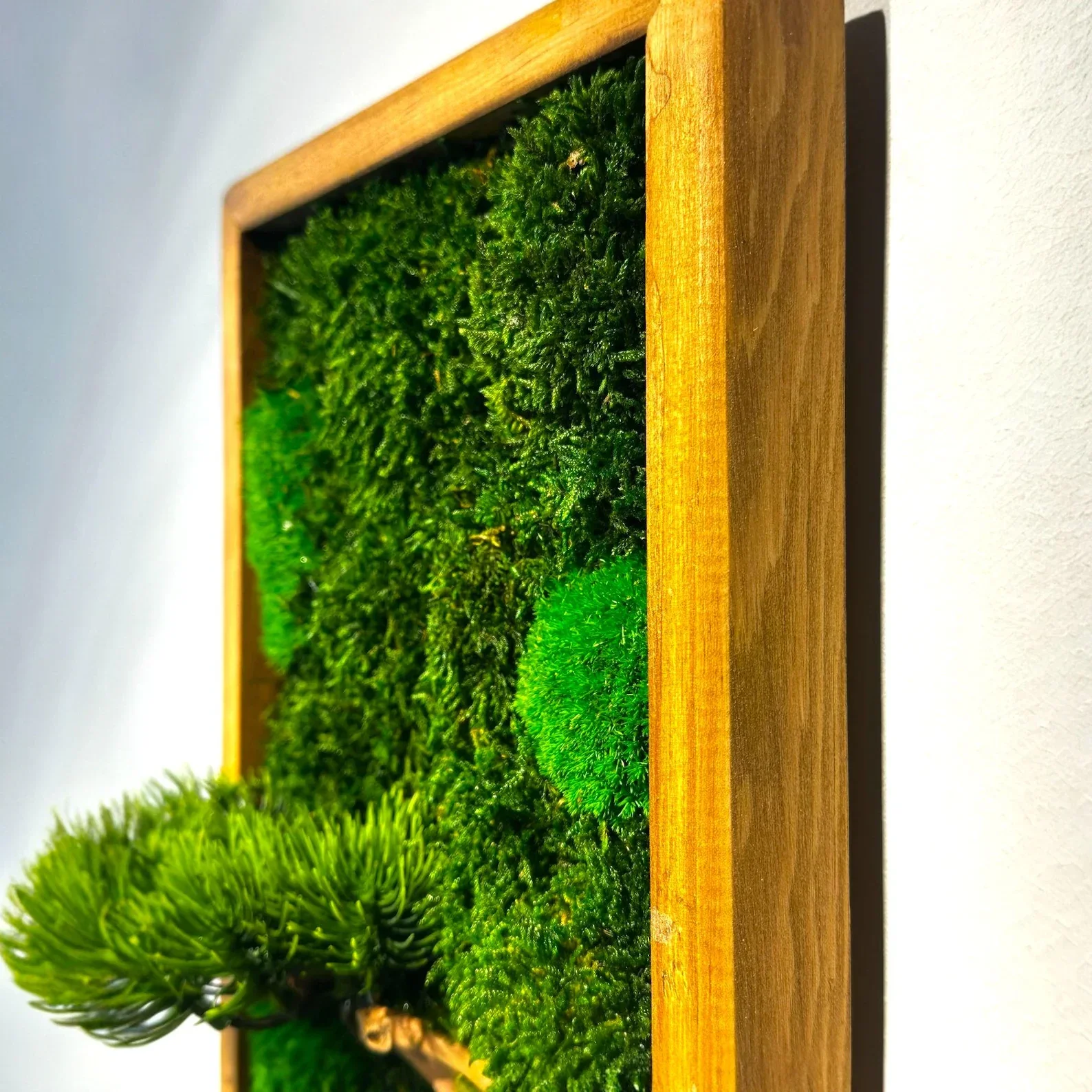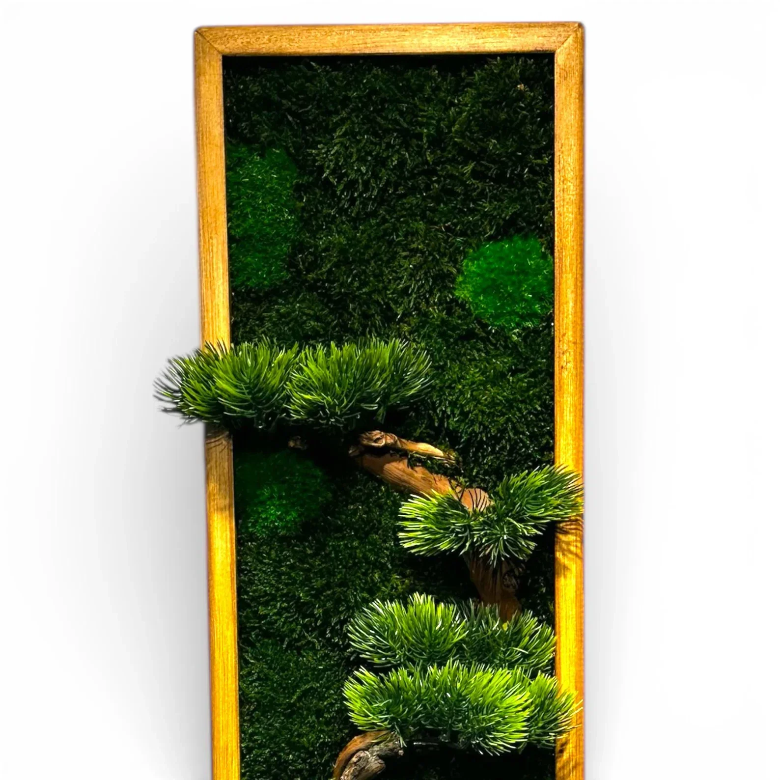 Décoration murale en mousse stabilisée avec de vraies branches de bonsaï - Cadre en pin des montagnes