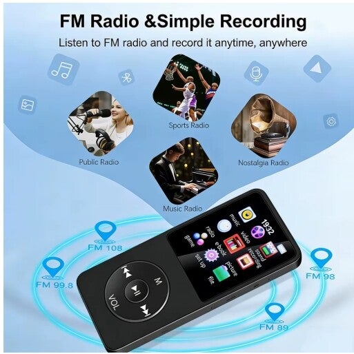 MP3 Player Bluetooth 5.0 Portable Music Player 1.8 inch Built-in Speaker Stereo Music Player Support FM Radio E-Book Recording