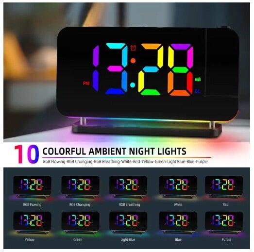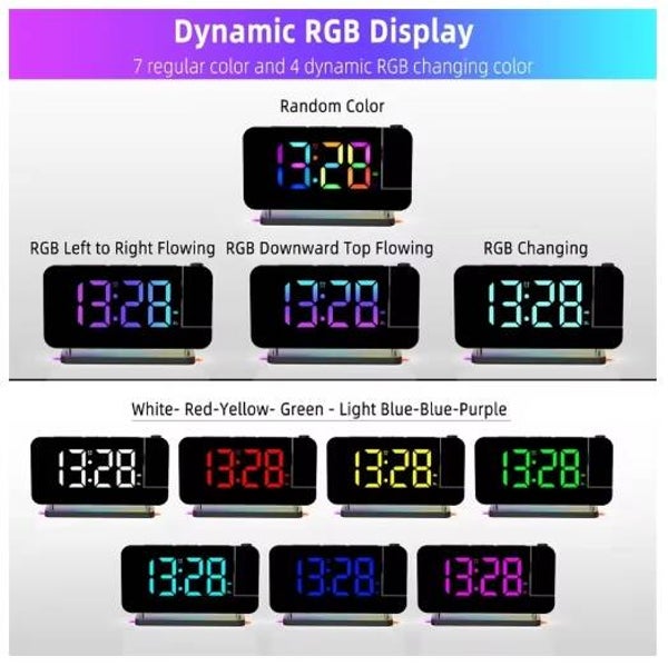 - Rgb Clock|Rgb Clock Alarm|Dynamic RGB Display:Features four dynamic gradients and seven monochrome options for personalized, vibrant timekeeping.